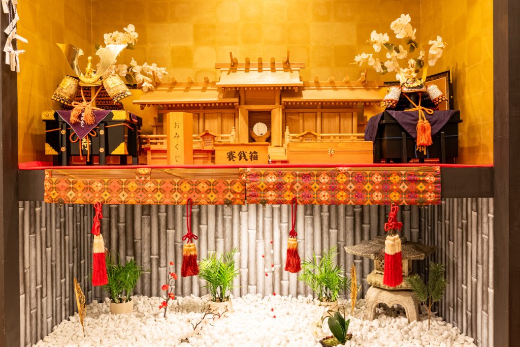 An authentic shrine space is set up in the room. A Shinto altar and Kabuto decorations create a solemn and beautiful atmosphere. Please enjoy a moment of tranquility while feeling the traditions of Japan.